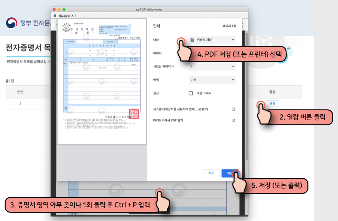 증명서 확인 및 저장
