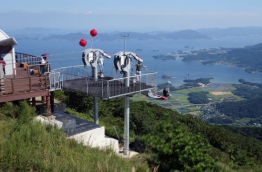 하동 짚라인(코리아 짚와이어)은 경남 하동 금오산 정상(해발 849m)에서 시작되는 짜릿한 공중 활강 레포츠입니다.