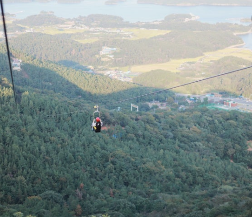 아시아에서 가장 긴 거리인 총 3,420m를 최고 시속 120km로 미끄러져 내려오는 이 체험은, 말 그대로 하늘을 가르며 날아가는 기분!