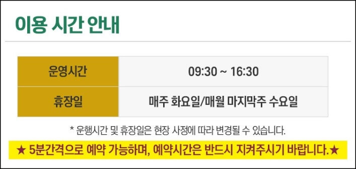 휴장일: 매주 화요일, 매월 마지막 주 수요일
