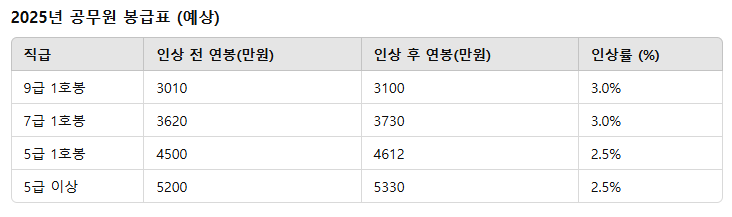 2025년 공무원 봉급 인상 효과